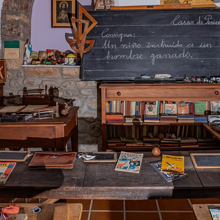 Este museo se encuentra en el interior de la Capilla de la Virgen de la Barca, en Casar de Periedo, Cabezón de la Sal, donde mediante una visita guiada podemos viajar en el tiempo y conocer la educación que se impartía hace décadas en España, gracias a su colección de mobiliario escolar y material didáctico.